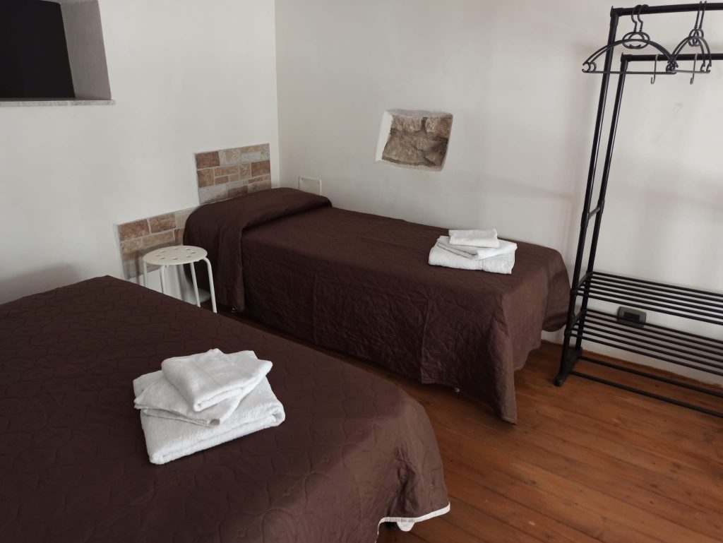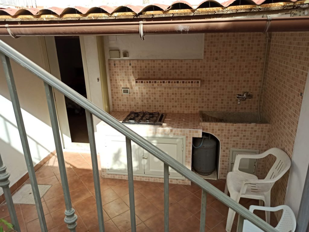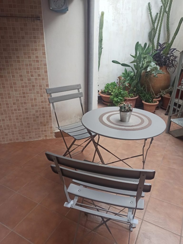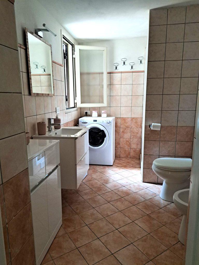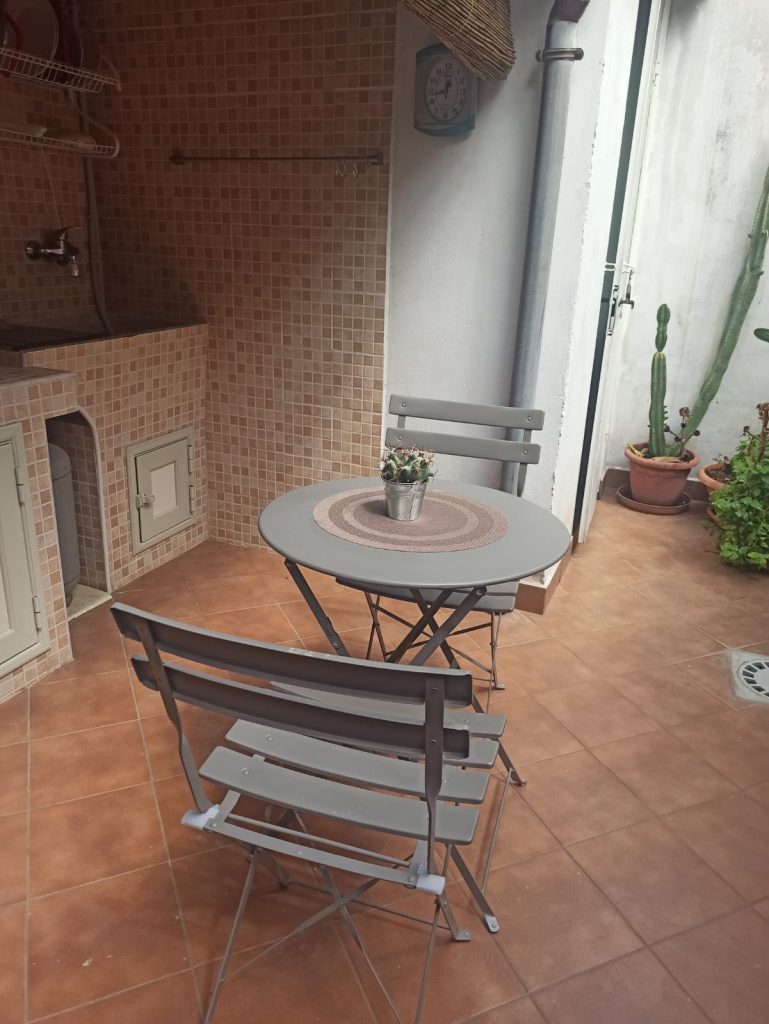 Vom Zimmer im Erdgeschoss hat man Zugang zum großen Bad und dem Außenbereich mit der kleinen Terrasse. Hier hat man genug Platz, um beispielsweise Surfbretter oder Tauchausrüstung abzustellen.