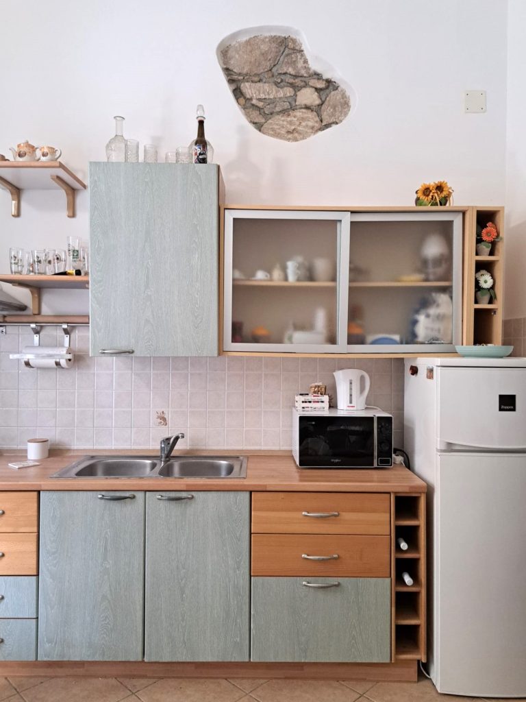 You will find the entrance on the ground floor with the eat-in kitchen that leads to the sleeping area.